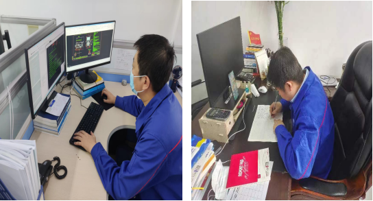 為保證公司重點合同按期交貨,重點項目有序推進,設(shè)計部堅持防疫和工作兩不誤,迅速將駐廠員工分成高、低壓兩個工作小組,在負責疫情防控工作的同時,全力投入售前資料的申請工作,優(yōu)先處理重點合同、重點項目的急要申請。居家員工線上辦公,通過OA辦公軟件,遠程開展技術(shù)協(xié)議審查、技術(shù)問題回復(fù)等工作。隨著駐廠人數(shù)的逐漸增加,設(shè)計部成立了工作突擊隊,持續(xù)跟蹤,全力以赴保市場、保進度。截至目前,設(shè)計部突擊隊已有28人駐廠復(fù)工,各設(shè)計室每天晚間統(tǒng)計上報當日工作進展情況,尾余工作數(shù)量,重點合同、重點項目進展情況,積極推進項目建設(shè),全過程跟蹤重點產(chǎn)品生產(chǎn)制造。確定了主氦風機試驗臺架建設(shè)部分最終施工方案并有序推進;跟蹤重點產(chǎn)品以及重點核電項目的裝配進度,解決了制造過程中的技術(shù)問題;完成了重點用戶急要高壓方箱電機技術(shù)資料下發(fā)和重點產(chǎn)品線上視頻技術(shù)交流等工作。