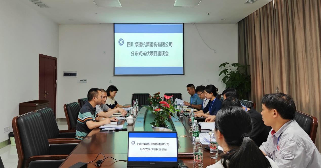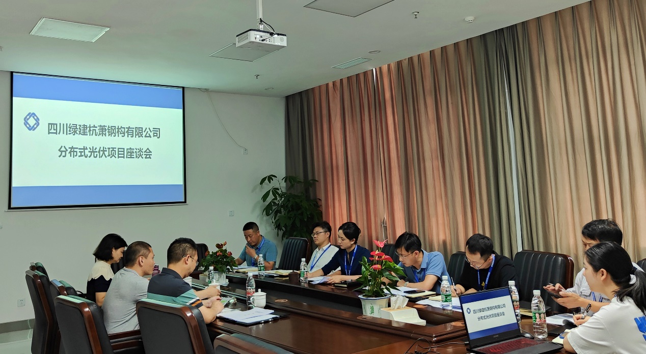 2022年6月30日上午,四川綠建杭蕭鋼構(gòu)有限公司(以下簡稱:綠建杭蕭)與四川省能源投資集團有限責任公司相關(guān)負責人共同召開分布式光伏項目座談會。綠建杭蕭總經(jīng)理古敏同志攜領(lǐng)導班子與相關(guān)部門負責人參加會議。